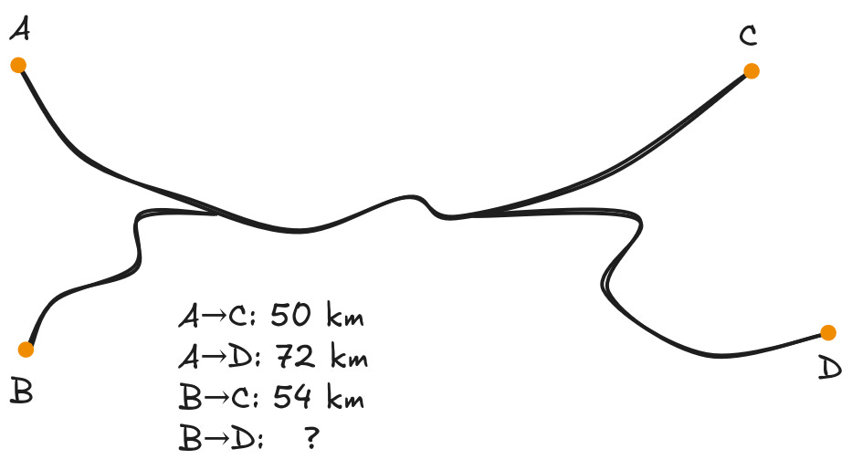 Meg tudjuk határozni a B-ből D-be menő útvonal hosszát?